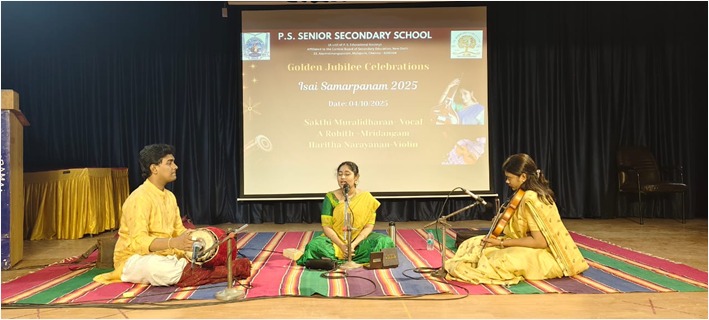 As part of the Golden Jubilee Celebrations, the school has organized a Music Festival - “Isai Samarpanam” for our students from August 2025 to January 2025. The festival features performances by our distinguished alumni in the field of classical music.