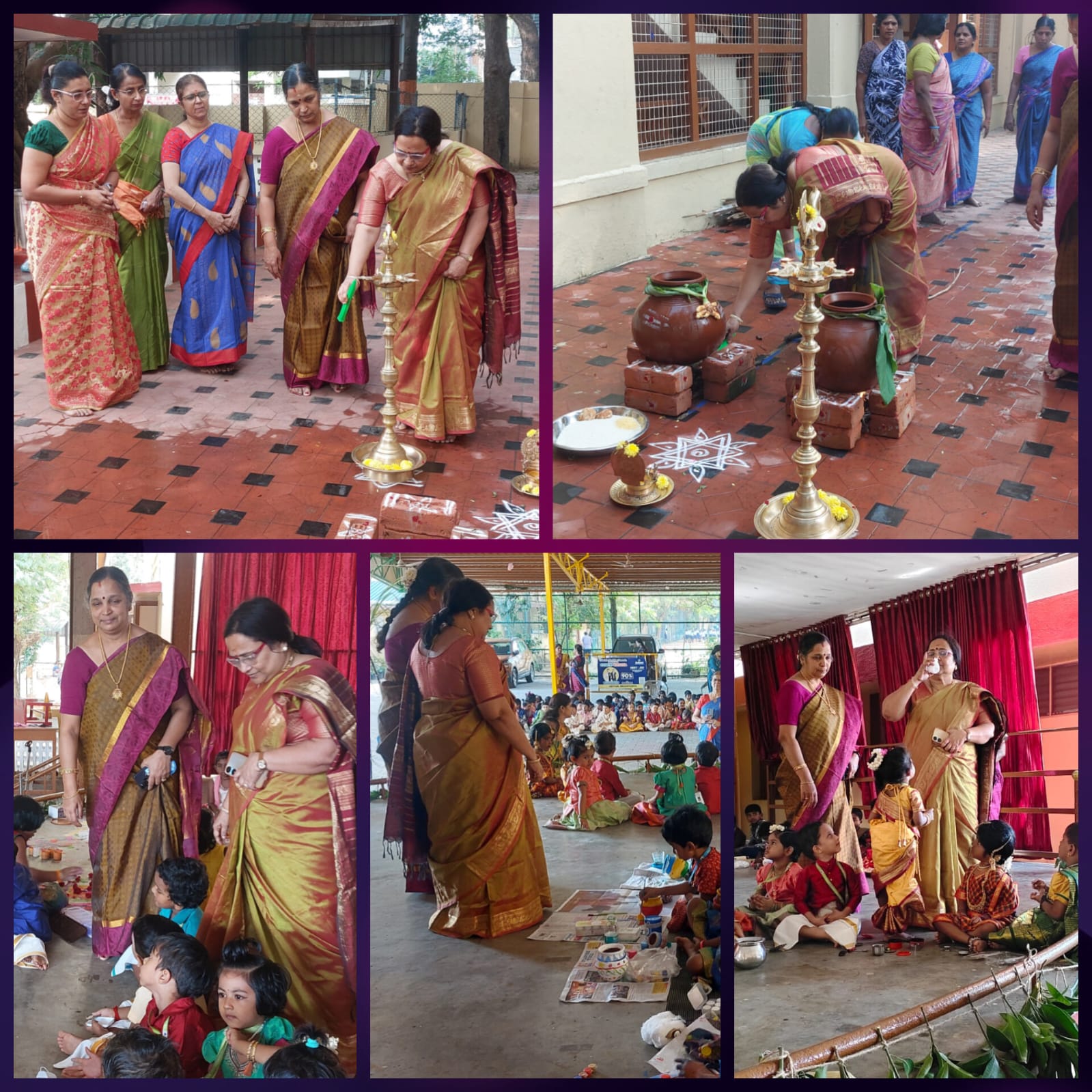 Pongal, one of the most significant Hindu festival of South India, is celebrated with great reverence and joy in P. S. Senior secondary school - Mylapore on 9th January 2025 , Thursday, by the KG Department as a thanksgiving festival for the Sun God.