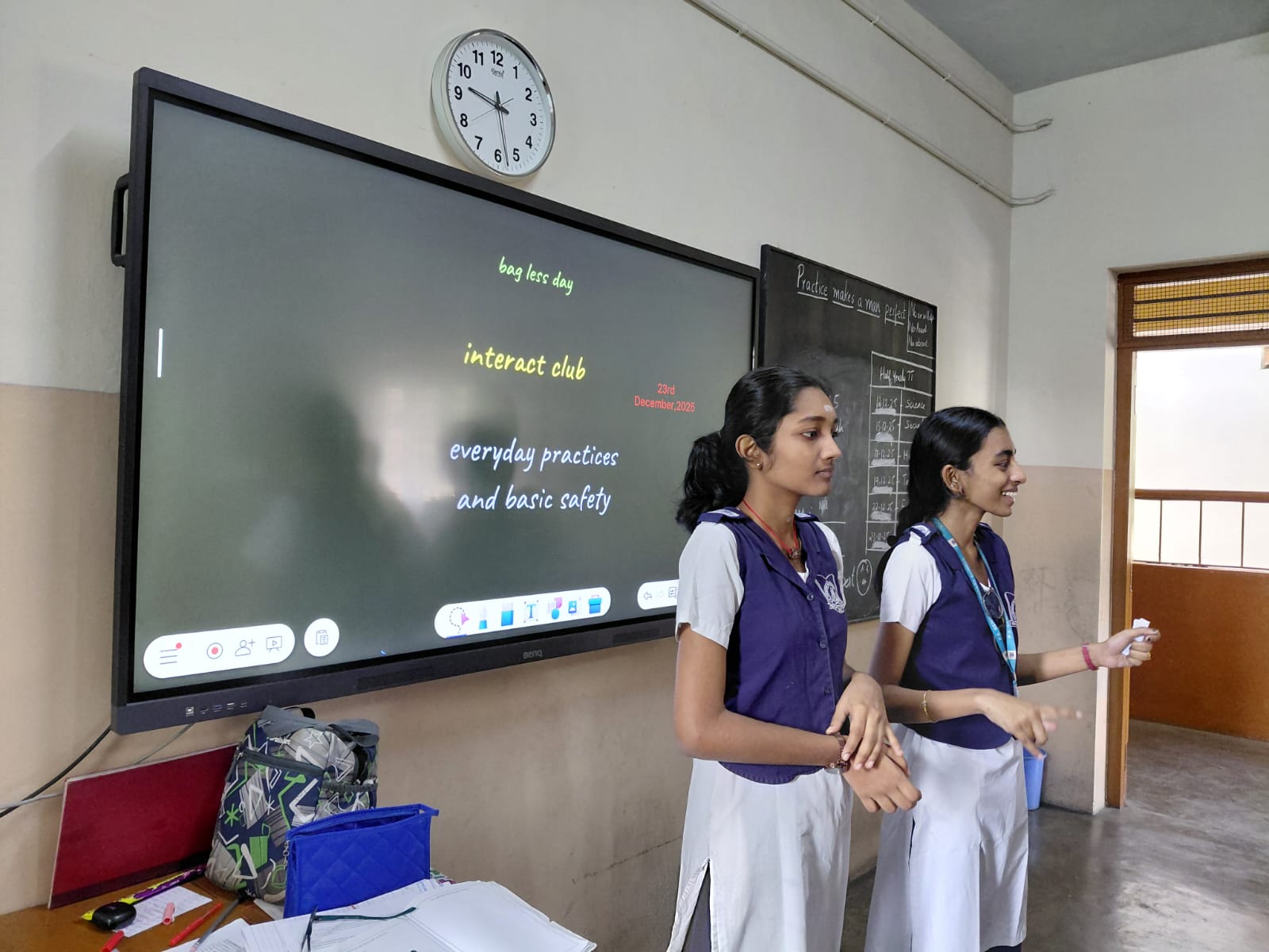 Interactive sessions using a PowerPoint presentation were held for classes 6, 7, 8, 9, and 10. The presentations covered a basic overview of what menstruation is, menstrual hygiene, side effects of a period, social taboos, and disposal of sanitary waste. Students were encouraged to ask questions and share their experiences.