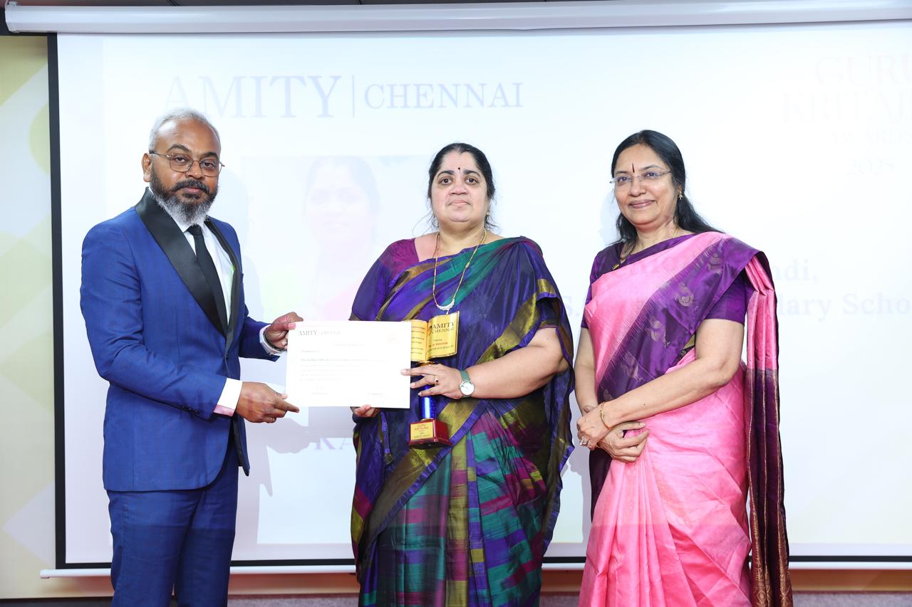 Mrs Kavita B,TGT Hindi, was awarded Guru Kritajna by Amity Global business School Chennai for the year 2025