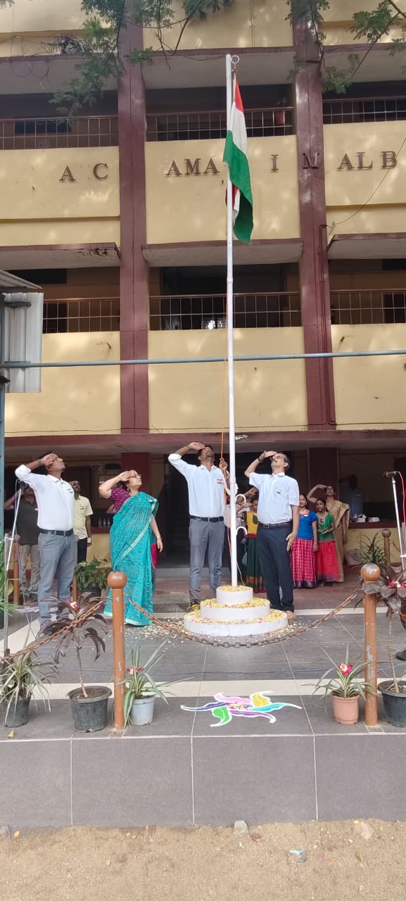 The 77th Independence day, was celebrated with patriotic fervour in the school premises. Our Correspondent P.S.Prabhakar hoisted the National Flag.