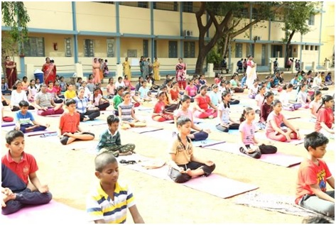 The International Yoga day (21/06/2018) was celebrated by students of classes VI,VII and VII participating in a lecture cum demonstration by Dr. Selvi. She has a doctorate in Yoga from Tami lNadu Sports University.
