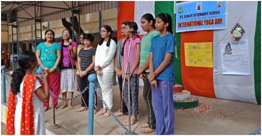 Shrishti Mishra of class 12 delivered a speech on the benefits of yoga. The students of the middle school performed yogasanas in commemoration of International Yoga Day.