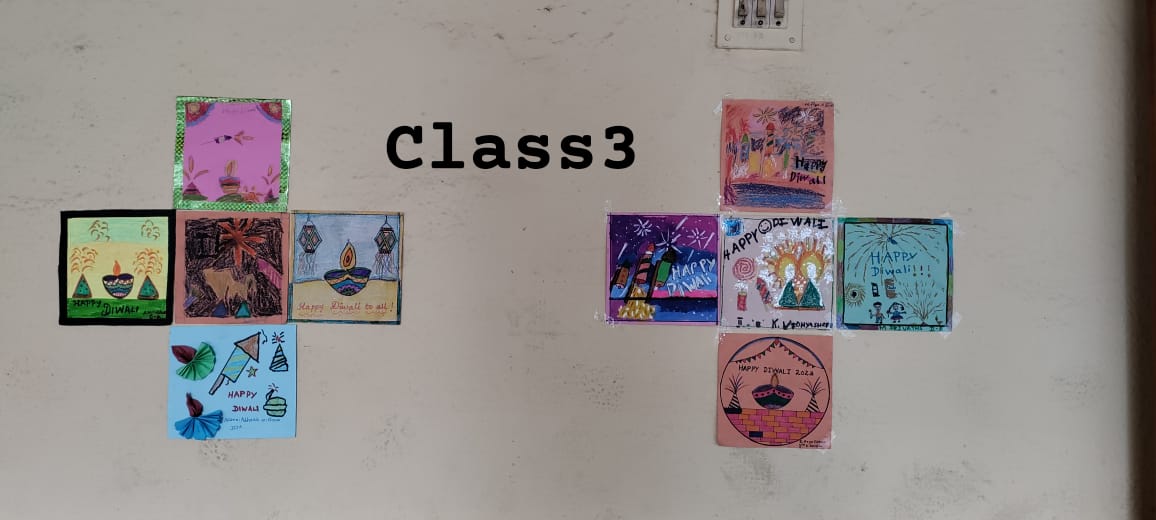 Students of classes 2,3,4 and 5 created wonderful drawings depicting the spirit of Diwali.