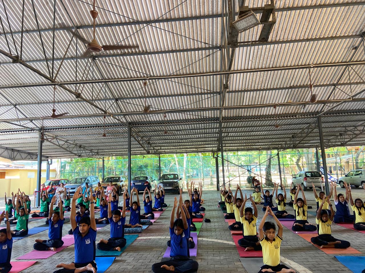 International Yoga Day was celebrated on 21/06/2024 in the school premises with students of Class 6 performing asanas under the guidance of Ms Nandini A, Yaazh yoga center , Mylapore.