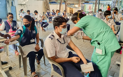 The students of classes 9 to 12 and in the age group of 15 – 18 are vaccinated with covaxine with the support of doctors and staff of Curie Hospital and YRG Care one of the largest NGO’s in India.